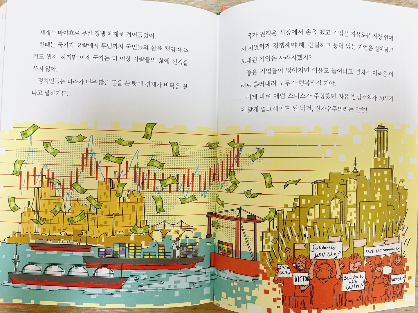 역사를 살펴보면 오늘날 경제에 의해서 세계까지 좌지우지되는지 원인과 흐름을 이해할 수 있어요. 인문학은 이렇게 세계를 보는 눈을 띄게 해 줍니다. 경제 어디서부터 어디까지 봐야 할지 모르시겠죠? 저도 참 막연했었어요. 재테크 주식 부동산이 한창 유행일 때 경제에 문외한인 제게 선뜻 시작하기엔 너무 무서워죠. 그래서 경제유튜브도 많이 봤는데 그때 봤던 지식들이 좀 정리될 수 있었어요. 확실히 진입장벽인 높은 분야는 어린이 책으로 시작하는 게 좋은 것 같아요.