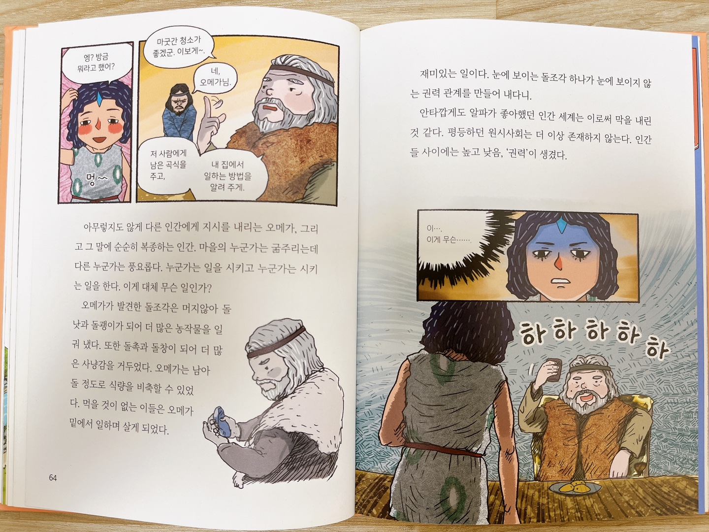 원시시대는 구석기 신석기 이때지요. 이때 뗀석기라는 돌도구를 통해서 생산수단을 갖게됩니다. 그때부터는 손으로 하던 것에서 도구를 활용함으로 일의 생산성이 높아지지요. 따라서 생산수단인 돌, 그저 돌하나지만 생산의 효율이 올라가면서 많이 가진 자와, 못 가진 자의 차이가 생기고 그 차이에서 권력이 생겨났습니다. 인류는 거기서 그렇게 권력이 시작되며 사회는 이제 권력에 의해서 다스려지게 됩니다. 지대넓얕은 지적인 대화를 위한 넓고 얕은 지식이다 보니까 구석기 신석기 청동기 철기 이렇게 분화되진 않아요.