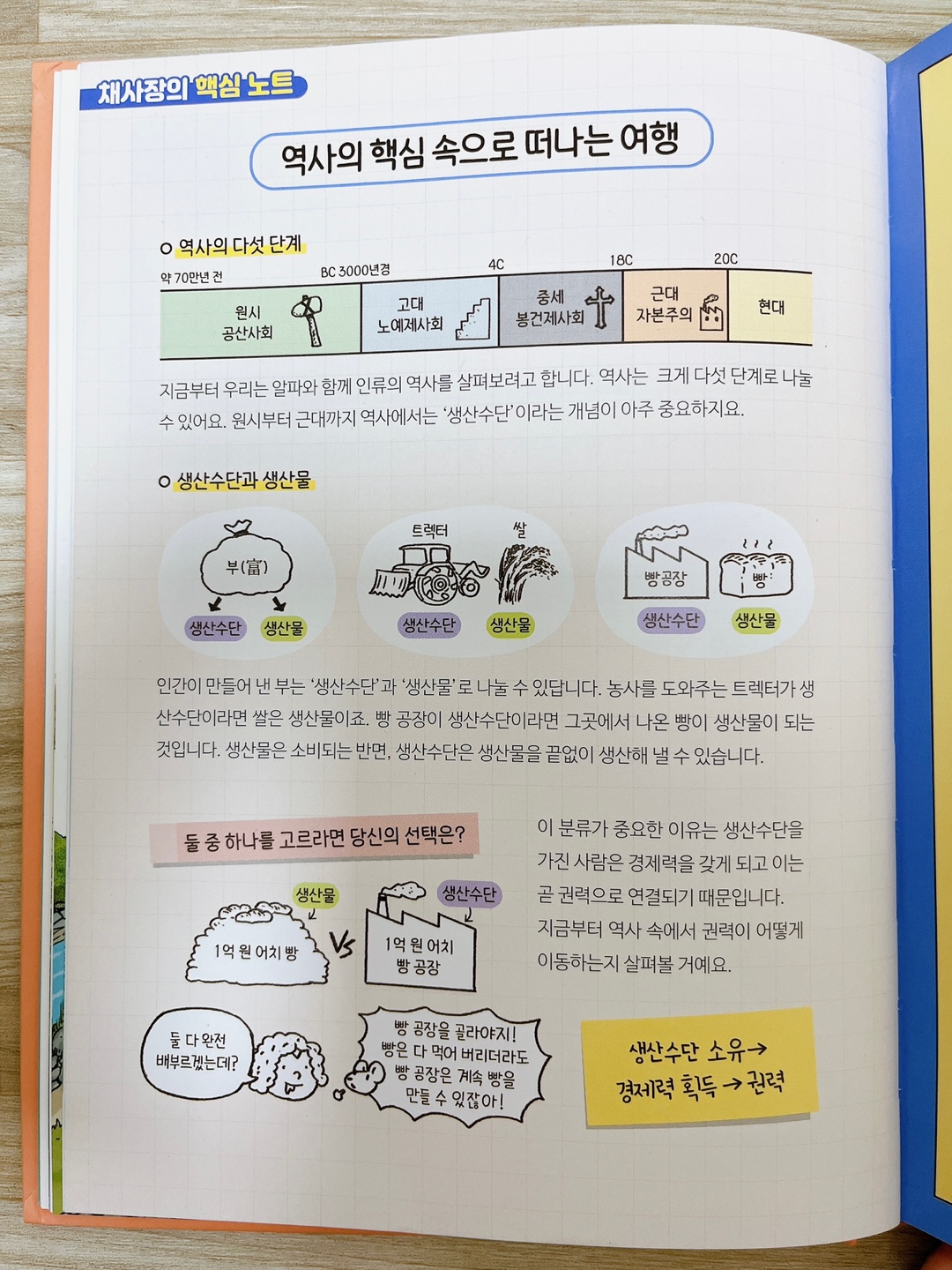 역사를 다섯단계로 나눠서 원시사회, 고대, 중세, 근대, 현대로 나뉘잖아요. 여기서 생산수단이라는 것으로 풀어내는데, 정말 이해가 쉽게 되었어요. 일단 뼈대를 크게 세우고 이제 세부내용을 채워가는 식으로 공부하면 좋습니다.