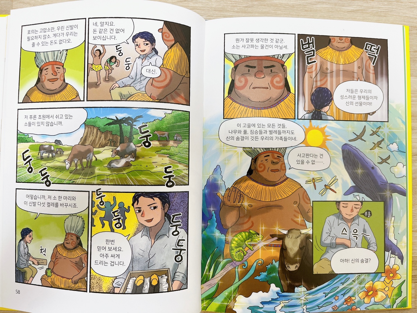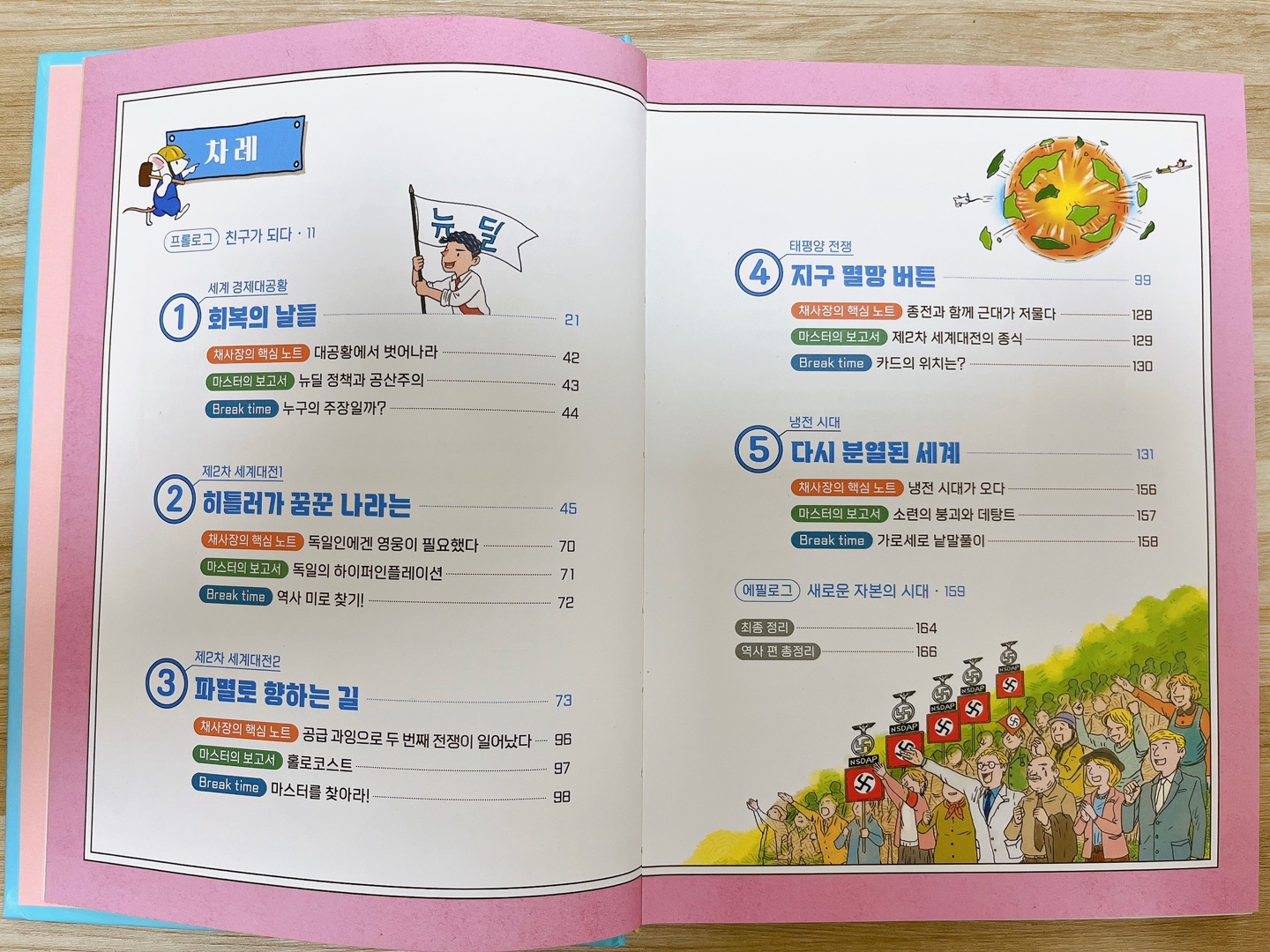 지대넓얕의 의미는 아시죠? 지적대화를 위한 넓고 얕은 지식이라고 한 때 어른들의 책으로 먼저 나와서 유행한 적이 있었어요. 어린이가 쉽게 접근할 수 있도록 쓰여있어서 성인인 저도 너무 쉽고 재미있게 읽었습니다. 먼저 제가 어린이 책을 읽으면서 느낀 건 크고 방대한 지식은 어린이책으로 쉽게 접근하면 지식이 점점 확장되는 것을 느낄 수 있습니다. 저는 이 책을 통해서 세계 돌아가는 것을 이해하게 되었어요.